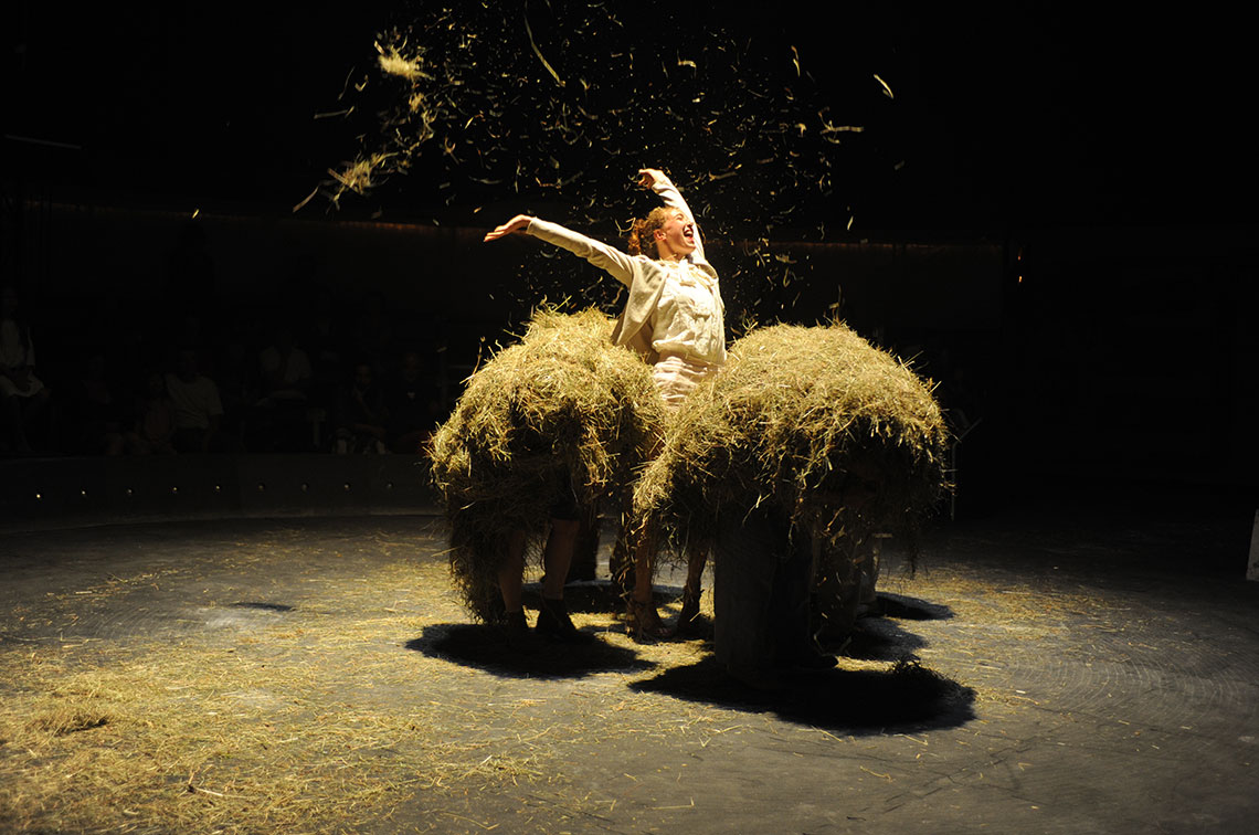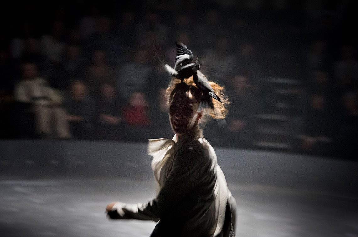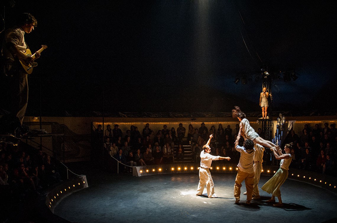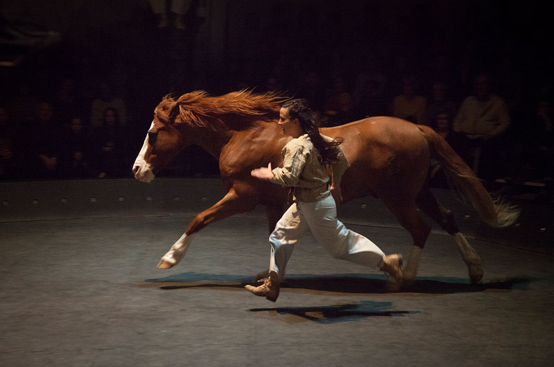 Built like a poem, this fascinating and thought-provoking performance explores, through the language of contemporary circus - blend of rhythm and voice, dance, acrobatics and visual arts - the intimate, delicate and profound bond between animals and humans. In its tent, a sort of reinvented primitive rock-painting’cave, we embark on an improbable journey and assist to an intelligent and sensitive dialogue of bodies on a quest for solutions on the edge of stability and imperfection, on freedom and ancestrality, protagonized by the members of a tribe of horses, birds and human artists.